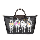 Внутри одно большое отделение, в котором расположен кармашек для мелких предметов. Закрывается на молнию и на клапан на кнопке. Компактно складывается до размеров 13 х 23 см.
