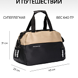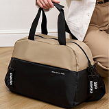 Дорожная сумка закрывается на двухстороннюю молнию, внутри большое отделение для вещей. Снаружи на передней стенке один карман на молнии. Оснащена двумя ручками, съемным регулируемым плечевым ремнем. Объем 38 л. Вес 0,5 кг.