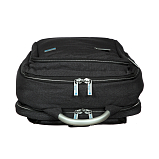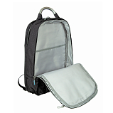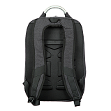 Рюкзак состоит из трех отделов, закрываются на двустороннюю молнию, в первом отделе внутри карман для документов, два сетчатых кармашка для мелких предметов, карабин для ключей, термокарман, во втором отделе карман для документов, в третьем отделе карман для ноутбука и для документов, снаружи на передней стенке карман быстрого доступа на молнии, оснащён эргономичными лямками, анатомической спинкой Airstripes, металлической ручкой для переноски рюкзака в руке.