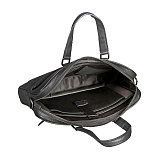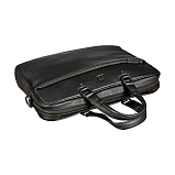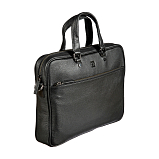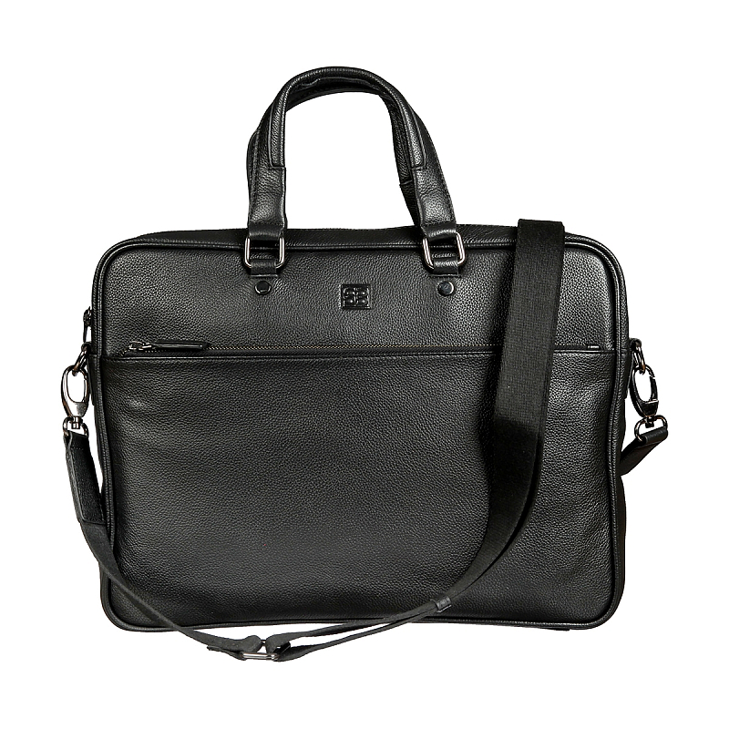 Классическая мужская бизнес-сумка из мягкой натуральной кожи мелкозернистой фактуры. Закрывается на молнию. Внутри одно основное отделение, двойной карман для планшета и документов на липучке, карман на молнии, три кармашка для пластиковых карт, карман для мобильного телефона и три держателя для авторучек. На лицевой и внутренней сторонах продольные карманы на молниях. Сумка оснащена двумя кожаными ручками и съёмным регулируемым плечевым ремнём на карабинах.