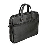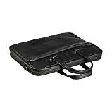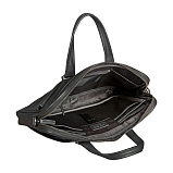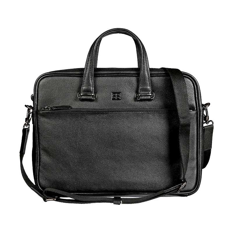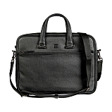 Классическая мужская бизнес-сумка из мягкой натуральной кожи мелкозернистой фактуры. Закрывается на молнию. Внутри одно основное отделение, двойной карман для планшета и документов на липучке, карман на молнии, три кармашка для пластиковых карт, карман для мобильного телефона и три держателя для авторучек. На лицевой и внутренней сторонах карманы на молниях. Сумка оснащена двумя кожаными ручками и съёмным регулируемым плечевым ремнём на карабинах.