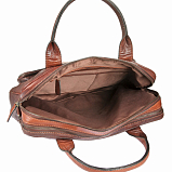 Внутри два отделения, где расположены двойное отделение для планшета на липучке, карман на молнии и два кармашка для мелких предметов. Оба отделения закрываются на молнии. С внешней стороны на лицевой стенке расположены отделение на молнии, карман на молнии и два небольших кармашка на молниях. Сумка оснащена съёмным регулируемым плечевым ремнём на карабинах.