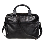 Внутри два отделения, где расположены отделение для планшета на липучке, карман на молнии, карман для мобильного телефона, два кармашка для мелких предметов, четыре кармашка для пластиковых карт, карман для ключей и два держателя для авторучек. Оба отделения закрываются на молнии. С внешней стороны на лицевой и задней стенках по карману на молниях, на задней стенке имеется дополнительный карман на кнопке. Сумка оснащена съёмным регулируемым кожаным плечевым ремнём на карабинах и креплением на задней стенке для ручки чемодана для удобства переноса.