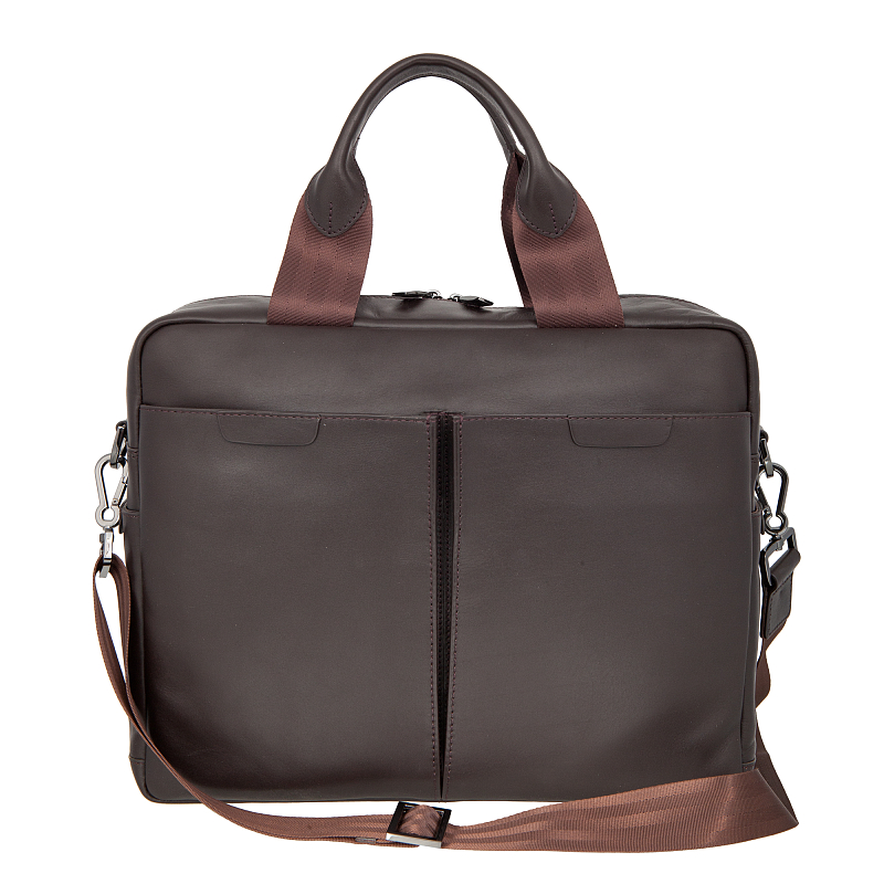 Стильная коричневая бизнес-сумка из премиальной натуральной кожи Vachetta. Сумка средних размеров, закрывается на двустороннюю молнию. Внутри одно просторное отделение, карман для документов на молнии, два кармашка для мелких предметов, три держателя для авторучек и мягкое отделение для планшета. Снаружи на лицевой стороне два кармана на магнитных кнопках, на внутренней врезной карман на молнии, по бокам два кармашка для разных мелочей. Оснащена двумя ручками и съёмным регулируемым плечевым ремнём на карабинах. Цвет фурнитуры - патинированное серебро.