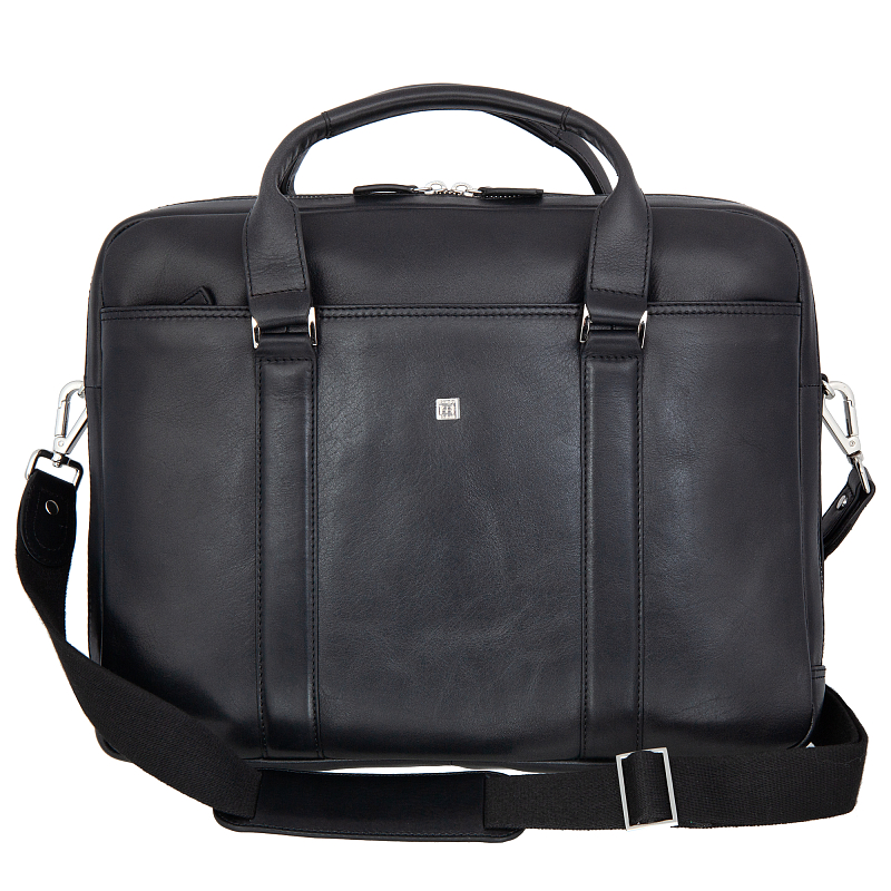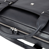 Стильная чёрная бизнес-сумка из мягкой натуральной кожи NAPPA. Закрывается на двустороннюю молнию. Внутри два основных отделения, два продольных кармана для документов на молниях, открытый кармашек для мелких предметов, два держателя для авторучек и карман для планшета на липучке. На лицевой и внутренней сторонах продольные карманы на молниях. Сумка оснащена верхними ручками и съёмным регулируемым плечевым ремнём на карабинах. Товар упакован в фирменный мешок-пыльник от бренда Sergio Belotti. Размеры: 30 х 39 х 7 см.