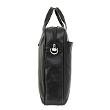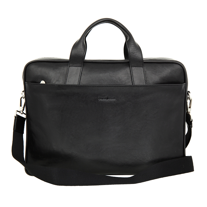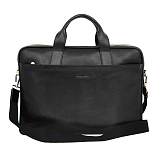 Деловая - повседневная сумка. Изготовлена из натуральной плотной кожи. Закрывается на молнию, оснащена ручками, съёмным регулируемым плечевым ремнём. Внутри имеет 1 карман на молнии для документов, открытые кармашки для мобильного телефона, пишущих принадлежностей и других мелочей, отделение для ноутбука или планшета. В качестве материала для внутренней части используется текстиль. Снаружи спереди карман на молнии. Размеры: 32 х 42 х 8 см.