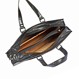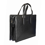 Мужская деловая сумка изготовлена из плотной фактурной кожи, закрывается на двустороннюю молнию. Внутри 3 отделения, центральное закрывается на молнию. В 1 из отделений расположен карман для планшета на липучке, в 2 карман на молнии, 2 кармашка для мелких предметов и держатель для авторучки. В качестве материала для внутренней части используется текстиль. Снаружи сзади карман, закрывающийся на магнитную кнопку. Оснащена ручками, плечевой ремень регулируется по длине. Размеры: 31 х 41 х 11 см.