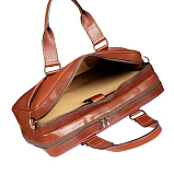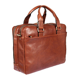 Деловая сумка - портфель из натуральной кожи. В сумке 2 основных независимых отделения на молнии. В 1 отделение расположен карман для планшета на липучке, в 2 карман на молнии для документов, открытые карманы для мобильного телефона, пишущих принадлежностей и других мелочей. В качестве материала для внутренней части используется текстиль. Снаружи спереди и сзади по одному карману на молниях. Оснащена ручками, съёмным регулируемым плечевым ремнём. Размеры: 30 х 41 х 14 см.