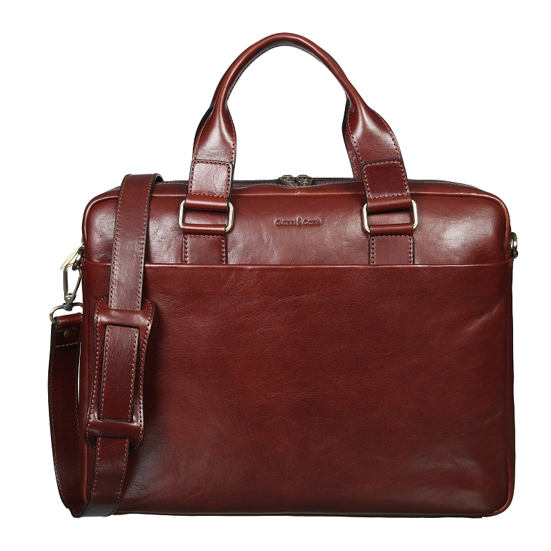 Бизнес-сумка Gianni Conti мужская кожа Vachetta - наилучшего качества, растительного дубления. Сумка с двумя отделениями на молнии. Внутри, в одном из отделений расположен карман для планшета на липучке, в другом карман на молнии, 2 кармашка для мелких предметов и держатель для авторучки. Снаружи с лицевой и задней стенках расположены по карману на молниях. Оснащена съёмным регулируемым плечевым ремнём на карабинах. Размеры: 31 х 40 х 10 см.
