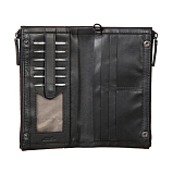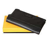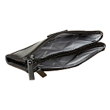 Борсетка состоит из двух отделений на молниях и разворота, закрывающегося на две кнопке, в которых расположены три кармана для документов, сетчатый карман и одиннадцать кармашков для пластиковых карт. Оснащена съёмным ремешком на запястье.