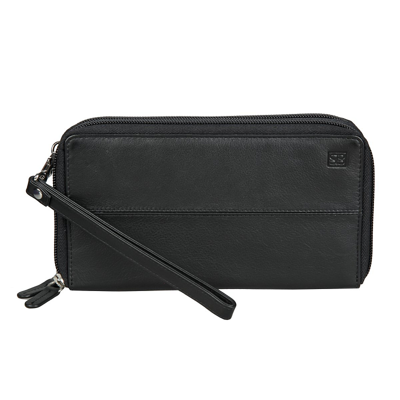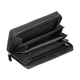Функциональное портмоне из мягкой натуральной кожи мелкозернистой фактуры. Выполняет функции кошелька. Состоит из двух отделений на молниях. В одном 4 кармана для документов. 4 сетчатых кармана и 21 кармашек для пластиковых карт. В другом 4 отделения для купюр и отделение для монет на молнии. Снаружи на тыльной стенке карман на молнии. Портмоне оснащено съёмным ремешком на запястье. Товар упакован в подарочную коробку от бренда Sergio Belotti.