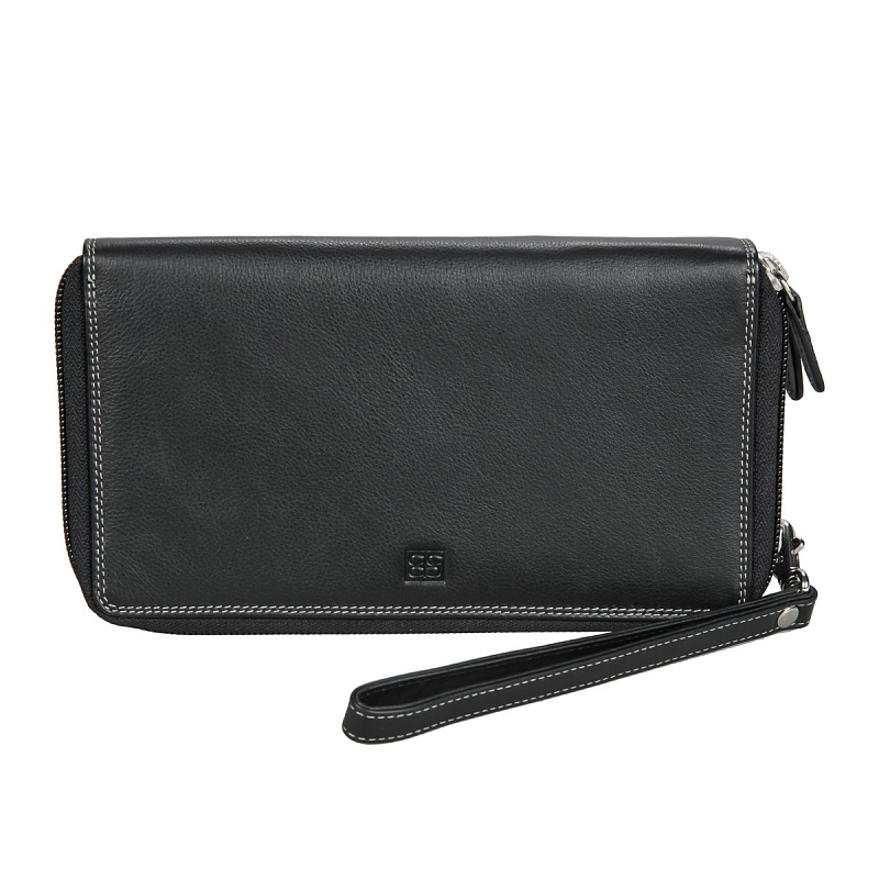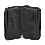 Функциональное портмоне из мягкой натуральной кожи мелкозернистой фактуры. Выполняет функции кошелька. Состоит из двух отделений на молниях. В одном 4 кармана для документов. 4 сетчатых кармана и 21 кармашек для пластиковых карт. В другом 4 отделения для купюр и отделение для монет на молнии. Снаружи на тыльной стенке карман на молнии. Портмоне оснащено съёмным ремешком на запястье. Товар упакован в подарочную коробку от бренда Sergio Belotti.