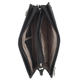 Борсетка мужская Gianni Conti из натуральной кожи, черного цвета. Внутри три отдела, один из них на молнии, в которых расположены четыре кармашка для пластиковых карт. Снаружи на лицевой и задней стенке карманы на молнии. Закрывается на молнию. Оснащена съёмным ремешком на запястье.