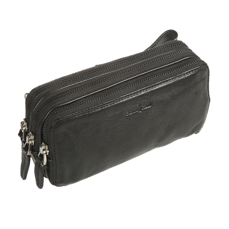 Борсетка состоит из трех отделений, в которых расположены двенадцать кармашков для пластиковых карт и карман на молнии. Все отделения закрываются на молнии. Оснащена съемным ремешком - петлей на запястье, на карабине.