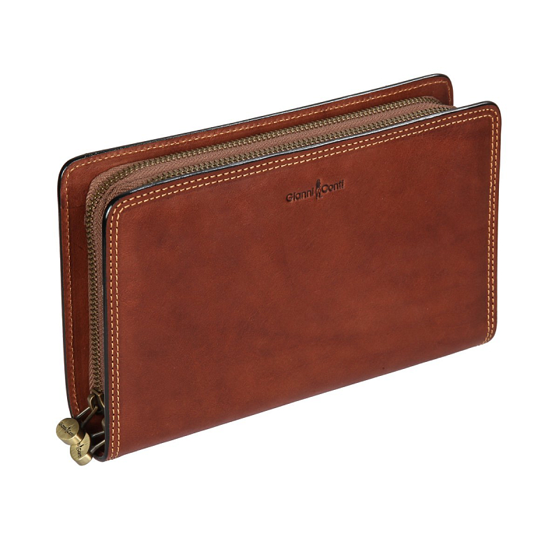 Мужская визитка Gianni Conti из натуральной кожи. Внутри два отделение закрывающиеся на молнии, 6 карманов для документов, 14 карманов для визиток/кредиток, 2 отдела для купюр, отделение для монет на молнии. Оснащена ремешком на запястье, имеет RFID Protection (защитный слой от считывания карт). Размеры: 22 х 14 х 4 см. Поставляется в фирменной коробке.