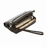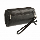 Внутри два отделения. В первом отделении расположены десять кармашков для пластиковых карт и четыре отдела для купюр, разделенных карманом для монет на молнии. Во втором отделении расположены четыре кармана для документов, два сетчатых кармана и девять кармашков для пластиковых карт. Оба отделения закрываются на молнию. С внешней стороны на задней стенке имеется карман на молнии для документов. Портмоне оснащено съёмным ремешком на запястье.