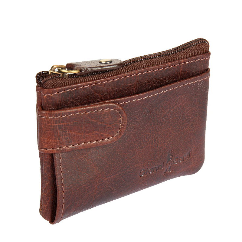 С внешней стороны на лицевой стенке имеется карман на кнопке. Внутри одно кольцо для ключей. Закрывается на молнию.