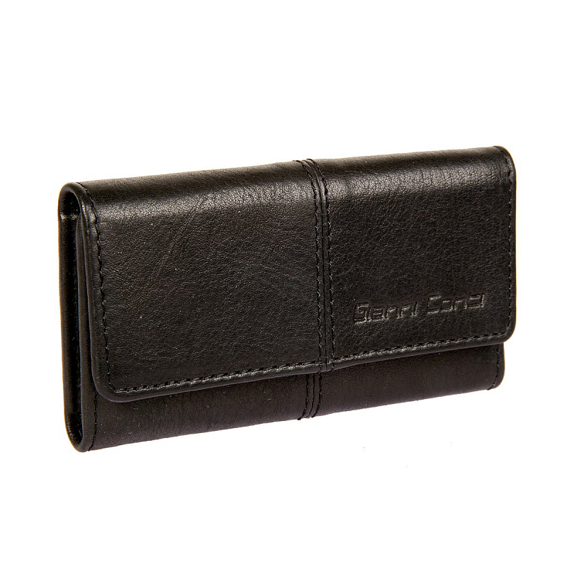 Внутри шесть карабинов для ключей и по одному кармашку с обеих сторон. Закрывается клапаном на двух кнопках.