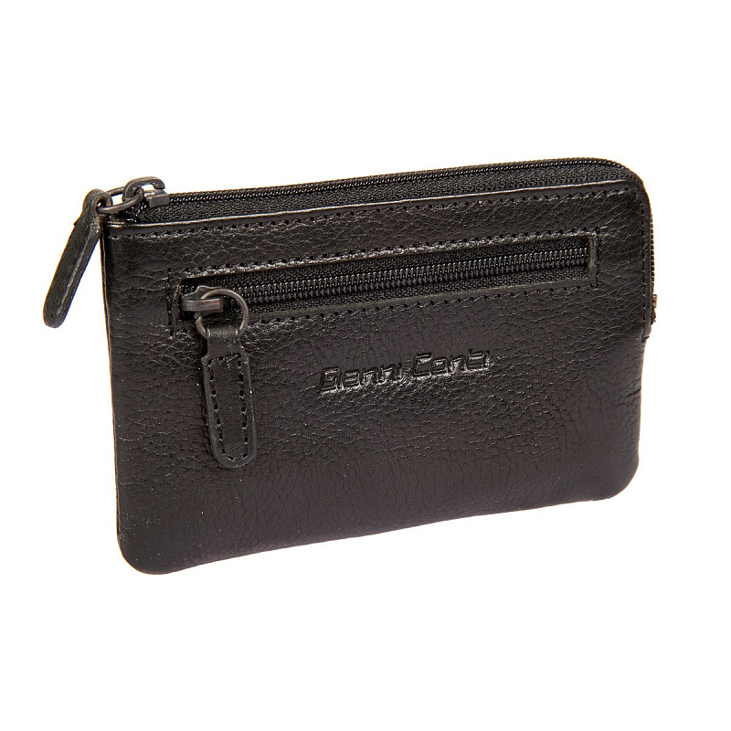 Внутри два кольца для ключей, снаружи на передней стенке карман на молнии. Закрывается на молнию.