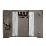Ключница на 6 ключей, закрывается клапаном на двух кнопках, внутри шесть колец, съемный кожаный брелок для ключа домофона, два кармашка.