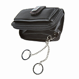 Внутри одно отделение, в котором расположены два кольца для ключей и два кармашка для мелких предметов. Закрывается на молнию.