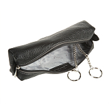 Внутри два кольца для ключей, снаружи карабин. Закрывается на молнию.