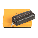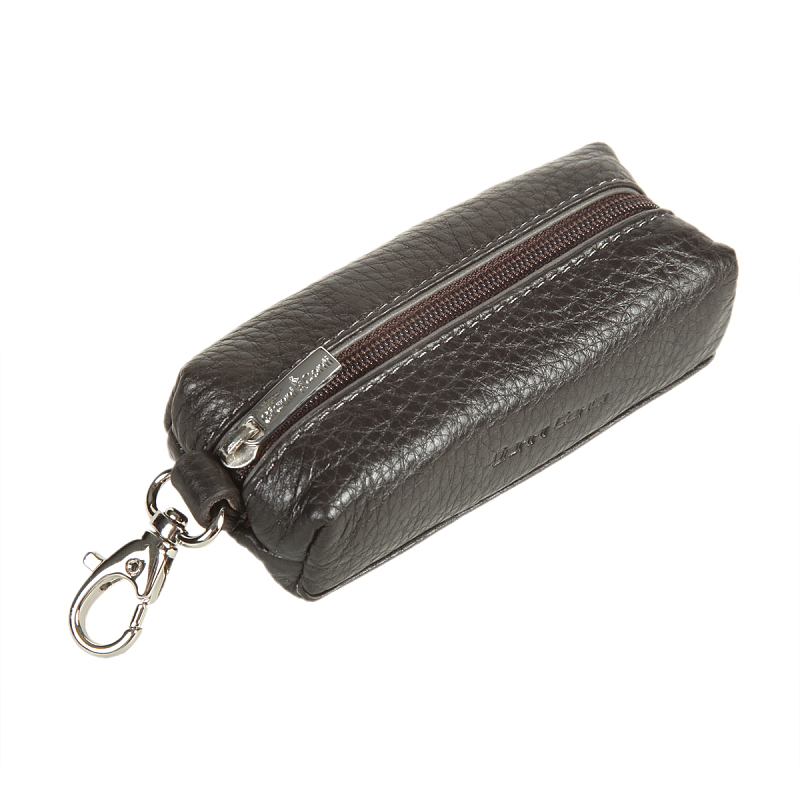 Внутри два кольца для ключей, снаружи карабин. Закрывается на молнию.