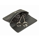 Внутри два кольца для ключей и карман для мелких предметов. Закрывается клапаном на кнопке.