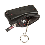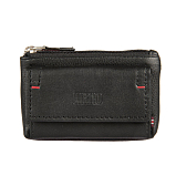 С внешней стороны на лицевой стенке имеется карман на кнопке. Внутри два кольца для ключей. Закрывается на молнию.