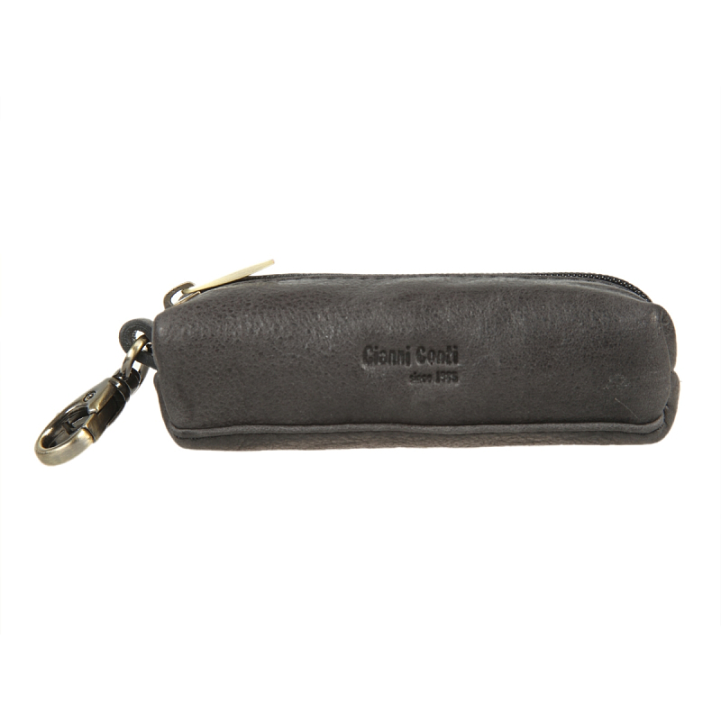 Внутри два кольца для ключей, снаружи карабин. Закрывается на молнию.
