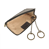 Внутри два кольца для ключей, снаружи на задней стенке карман на молнии. Закрывается на молнию.