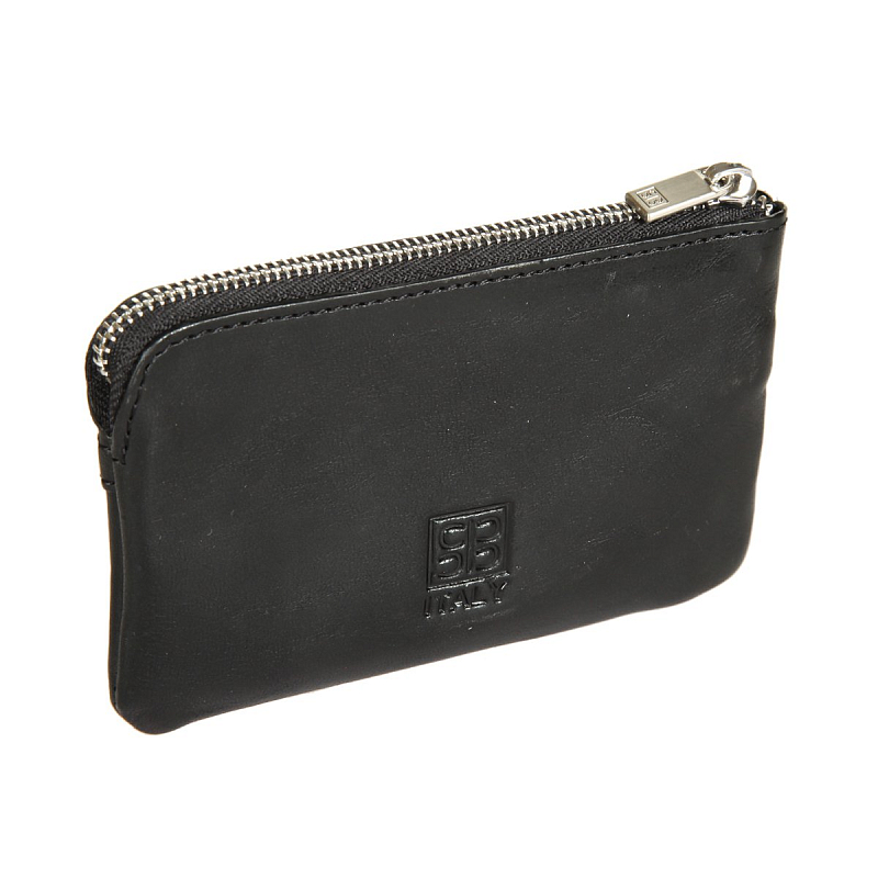 С внешней стороны на передней стенке расположен карман на молнии. Внутри два кольца для ключей. Закрывается на молнию.