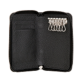 Чёрная кожаная ключница от бренда Sergio Belotti. Закрывается на молнию. Внутри шесть карабинов для ключей и три кармашка для пластиковых карт. Товар упакован в подарочную коробку от бренда Sergio Belotti. Размеры: 13,5 х 8 х 2 см.