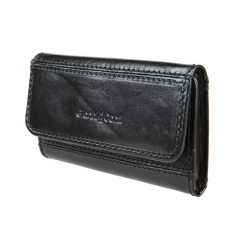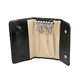 Внутри шесть карабинов для ключей и кармашек для магнитного ключа. Закрывается клапаном на двух кнопках.