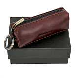 Закрывается на молнию, внутри одно кольцо для ключей на цепочке. Снаружи кольцо.