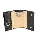 Ключница на 6 ключей, закрывается клапаном на двух кнопках, внутри шесть карабинов для ключей, съемный кожаный брелок для ключа домофона, два кармашка.