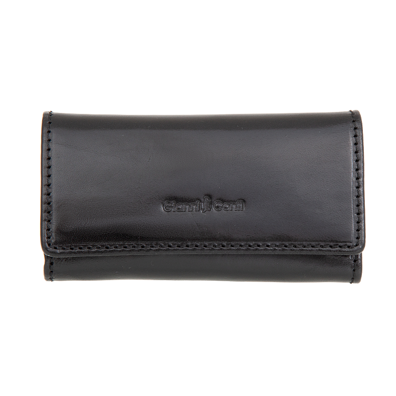 Ключница на 6 ключей из натуральной кожи, бренда Gianni Conti. Закрывается клапаном на двух кнопках, внутри шесть колец, съемный кожаный брелок для ключа домофона, два кармашка.