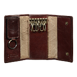 Ключница на 6 ключей, закрывается клапаном на двух кнопках, внутри шесть колец, съемный кожаный брелок для ключа домофона, два кармашка.