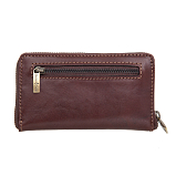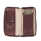 Коричневая кожаная ключница от бренда Gianni Conti. Закрывается на молнию. Внутри шесть колец для ключей и съёмный кожаный брелок с кольцом, крепится на две кнопки. Цвет фурнитуры - патинированная латунь.