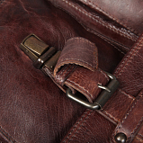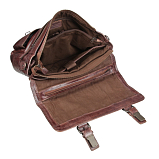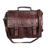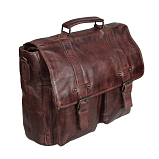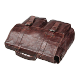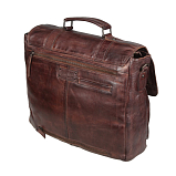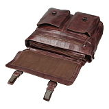 Портфель закрывается клапаном на два замка-защёлки. Внутри три отдела, один из них на молнии. В которых карман на молнии, кармашек для мелких предметов, два держателя для авторучки, четыре кармашка для пластиковых карт, карман для бумаг (А4), закрывается клапаном на липучке. На передней стенке под клапаном карман на молнии, два кармашка для мелких предметов. Снаружи на задней стенке карман на молнии. Оснащен съемным регулируемым плечевым ремнем (кожаный) на карабинах, на задней стенке крепление на ручку чемодана, для удобства переноса