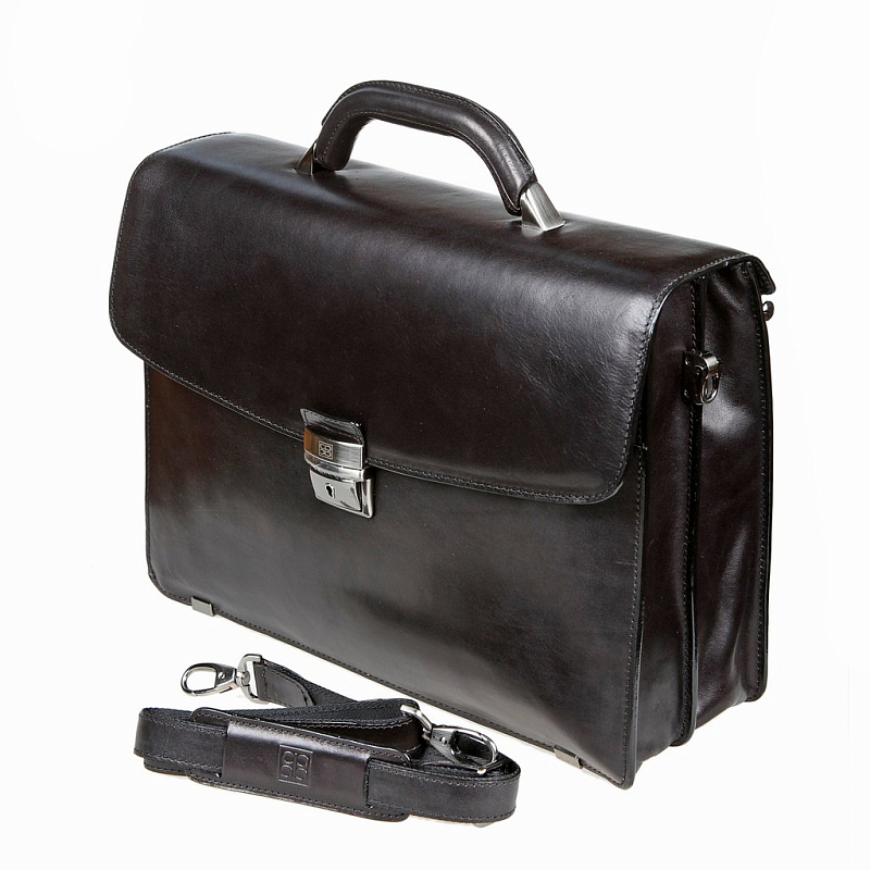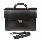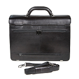 Портфель закрывается на классический замок с ключом. Внутри два основных отделения, два продольных кармана на молнии, отдел для планшета, три кармашка для пластиковых карт, три кармашка для мелких предметов, держатель для авторучки. Снаружи на лицевой стенке два продольных кармана для документов, один из них на молнии, на задней стенке карман с двумя молниями. На внутренней стороне клапана потайной карман на молнии. Портфель оснащён съёмным регулируемым плечевым ремнём на карабинах.
