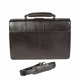 Портфель закрывается на клапан с замком на ключ. С внешней стороны на задней стенке расположен карман для документов. На лицевой стенке большой карман для бумаг. На внутренней стороне козырька имеется потайной карман на молнии. Внутри три больших отделения, одно из которых на молнии. В первом отделении имеются два держателя для авторучек, четыре кармашка для пластиковых карт, и карман для мобильного телефона. Во втором отделении имеются карман для ноутбука на липучке и карабин для ключей. Портфель оснащён съёмным регулируемым плечевым ремнём на карабинах.