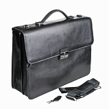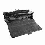 Портфель закрывается на клапан с замком на ключ. С внешней стороны на задней стенке расположен карман на молнии. На лицевой стенке под козырьком расположен карман для бумаг. На внутренней стороне козырька имеется потайной карман на молнии. Внутри два больших отделения. В одном из отделений имеется карман на молнии. В другом отделении имеются два держателя для авторучек, два кармашка для пластиковых карт, карман для мобильного телефона и два кармана для мелких предметов. Портфель оснащён съёмным регулируемым плечевым ремнём на карабинах.