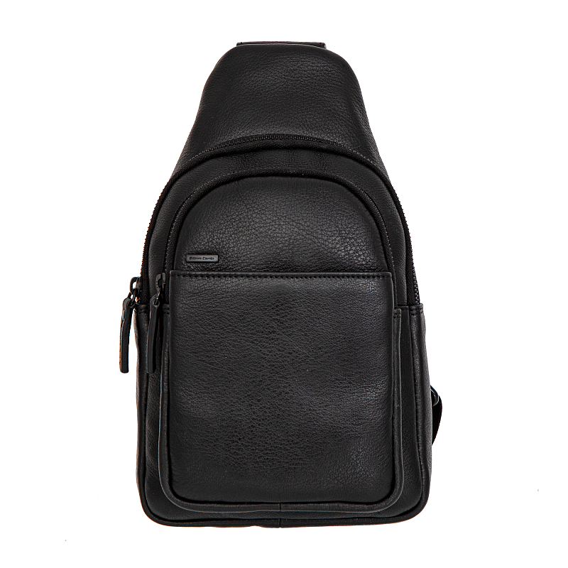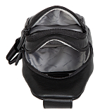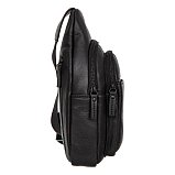 Стильная кожаная мужская сумка слинг от Gianni Conti. Состоит из двух независимых отделений на молниях. В основном отделении расположены карман на молнии и кармашек для телефона и мелких предметов. Во втором отделении один открытый карман. На лицевой стороне карман на кнопке, на внутренней вертикальный карман на молнии. Вмещает документы формата А5. Оснащена широкой регулируемой плечевой лямкой. Фурнитура чёрного цвета в тон сумки.