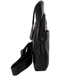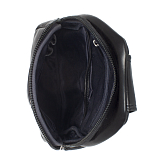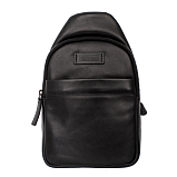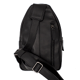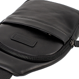 Сумка слинг через плечо черного цвета из натуральной кожи. Состоит из одного основного отделения, закрывается на молнию. Внутри карман на молнии, карман для мелких предметов, четыре кармашка для пластиковых карт, два держателя для авторучки. Снаружи на лицевой и задней стенках карманы на молнии. Сумка оснащена регулируемым плечевым ремнём.