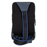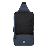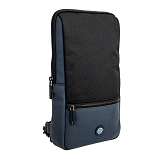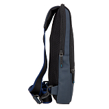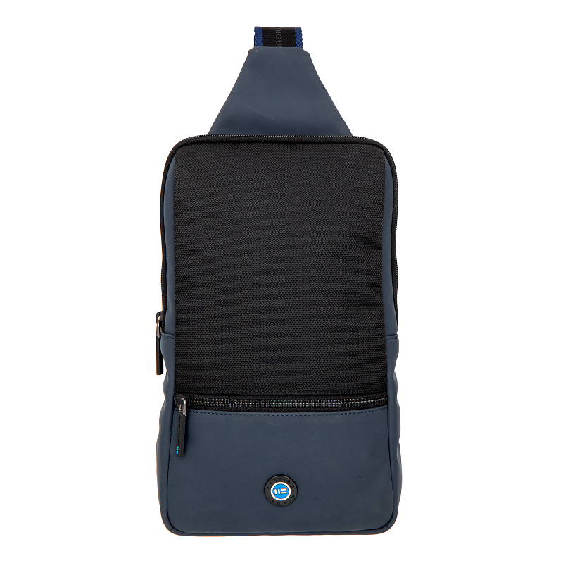 Сумка слинг через плечо черного цвета из нейлона и натуральной кожи. Сумка закрывается на молнию, внутри одно главное отделение, в котором расположены: карман для мелких предметов и карман для мобильного телефона, два держателя для авторучки. С внешней стороны на лицевой стенке и на тыльной задней стенке расположен отдел на молнии. Сумка оснащена  регулируемым плечевым ремнём на карабинах.