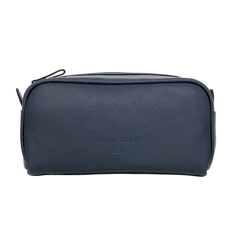 Мужской синий кожаный несессер от итальянского бренда Sergio Belotti. Внутри вместительный отдел для косметических принадлежностей. Закрывается на молнию. Цвет фурнитуры - серебро.