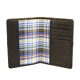 Внутри обложки на правой стороне расположен кожаный карман шириной 7 см, состоящий из шести кармашков для пластиковых карт. На левой стороне кожаный карман шириной 3 см