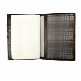 Внутри блок, состоящий из десяти прозрачных файлов и файла для водительского удостоверения. На правой внутренней стороне обложки располагается сетчатое отделение, на левой два больших отделения и пять кармашков для пластиковых карт.