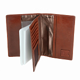 Внутри два отделения. В первом отделении на правой стороне расположен кожаный карман, на котором имеется кармашек для SIM-карты и потайной карман. На левой стороне расположен кожаный карман, состоящий из шести кармашков для пластиковых карт и сетчатого кармана. Во втором отделении расположен блок, состоящий из четырех прозрачных файлов, файла формата А5 и файла для водительского удостоверения. На обеих сторонах имеются два кожаных кармашка.
